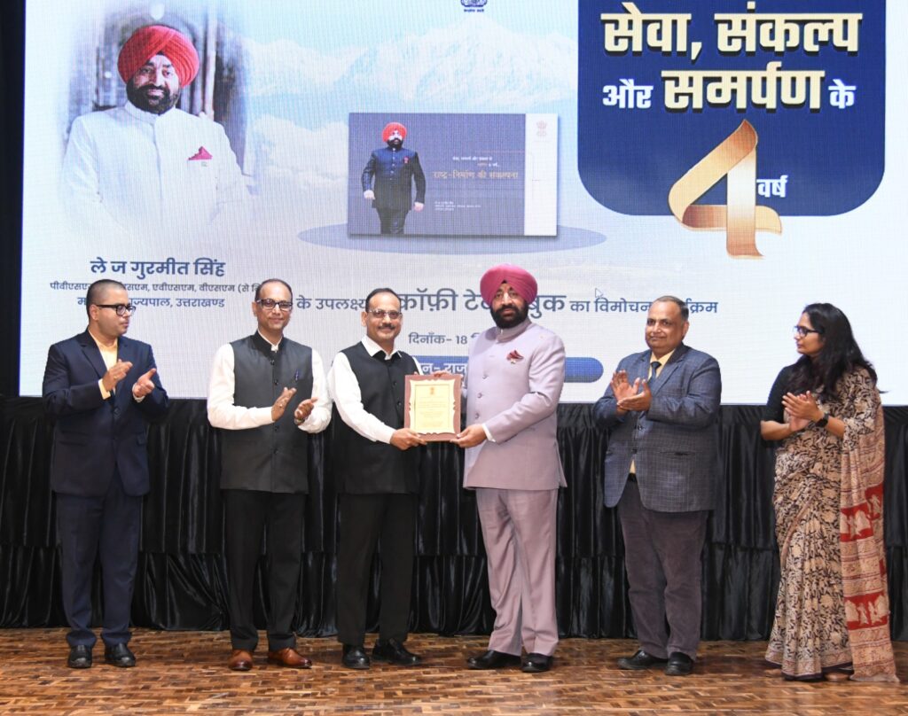 TSA न्यूज देहरादून , दिनांक 18 सितम्बर। राज्यपाल लेफ्टिनेंट जनरल गुरमीत सिंह (से नि) ने आज राजभवन में ‘‘सेवा, संकल्प और समर्पण के चार वर्ष’’ शीर्षक कॉफी टेबल बुक का विमोचन किया। यह कॉफी टेबल बुक, राजभवन सूचना परिसर द्वारा राज्यपाल के चार वर्षों के कार्यकाल की उपलब्धियों पर आधारित है। उल्लेखनीय है कि राज्यपाल ने […]